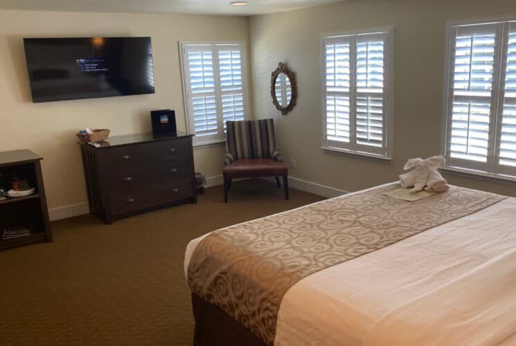 This accommodation invites you in with two queen luxury beds. Additional amenities include luxury linens, plush robes, hairdryer, eco-friendly soap and shampoo, large-screen smart TV, complimentary Wi-Fi, in-room coffee & tea service, continental breakfast and nightly wine and appetizer hour. All rooms are non-smoking. This room is pet friendly.